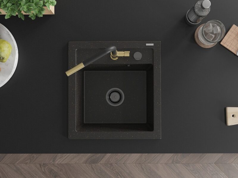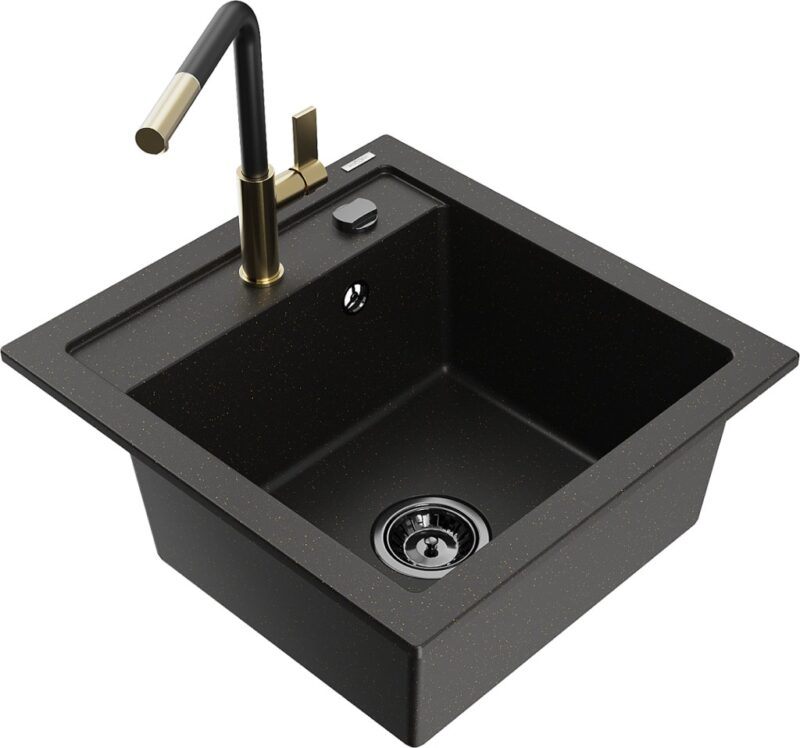MEXEN/S MEXEN/S – Vito granitový drez 1-miska vrátane batérie Flora, čierna/zlatá metalik 6503-75-670401-57-B