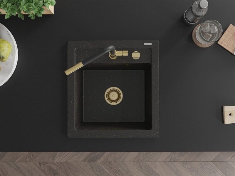 MEXEN/S MEXEN/S – Vito granitový drez 1-miska vrátane batérie Flora, čierna/zlatá metalik 6503-75-670401-57-G