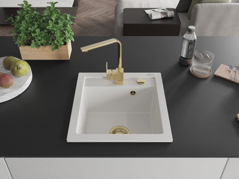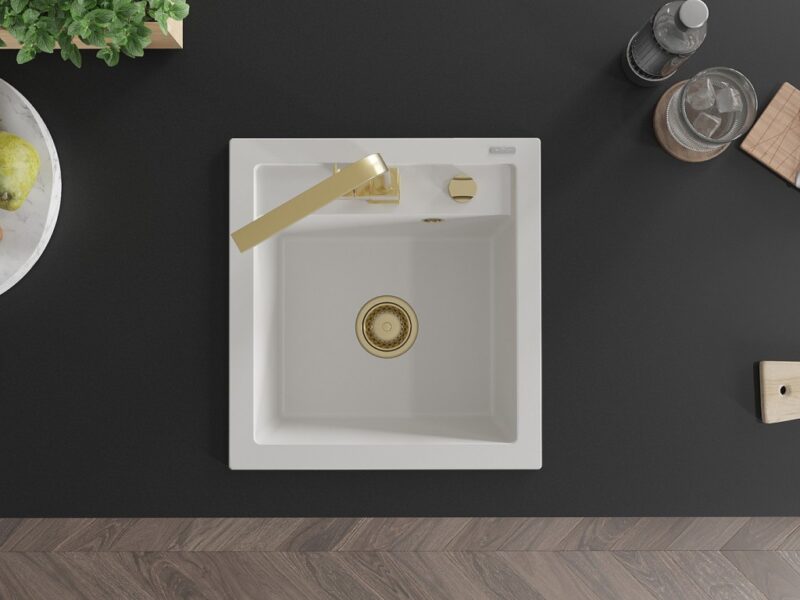 MEXEN/S MEXEN/S – Vito granitový drez 1-miska vrátane batérie Rita, biela 6503-20-670300-50