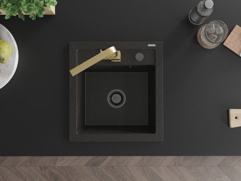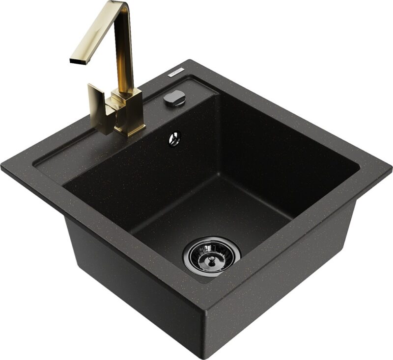 MEXEN/S MEXEN/S – Vito granitový drez 1-miska vrátane batérie Rita, čierna/zlatá metalik 6503-75-670300-50-B