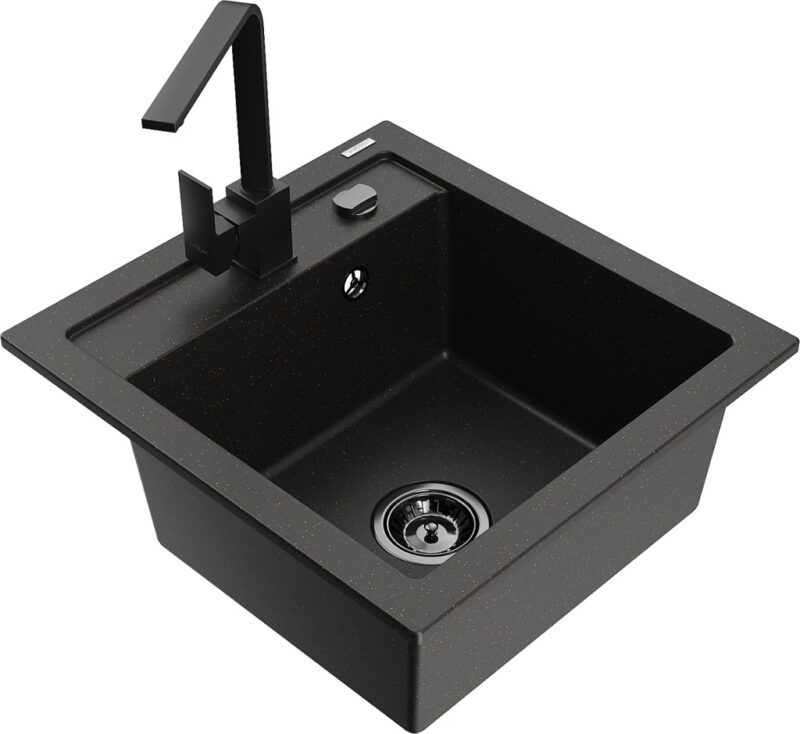 MEXEN/S MEXEN/S – Vito granitový drez 1-miska vrátane batérie Rita, čierna/zlatá metalik 6503-75-670300-70-B