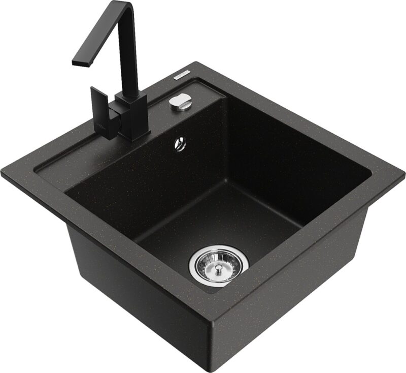 MEXEN/S MEXEN/S – Vito granitový drez 1-miska vrátane batérie Rita, čierna/zlatá metalik 6503-75-670300-70