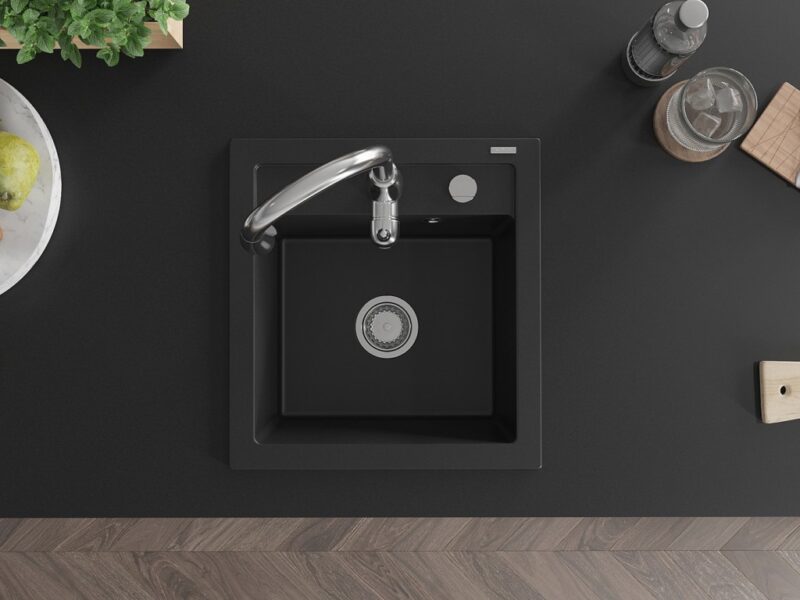 MEXEN/S MEXEN/S – Vito granitový drez 1-miska vrátane batérie Savita, čierna 6503-77-672601-00