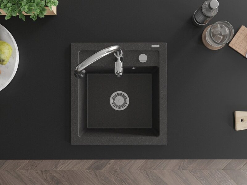 drez: Rozmer: 520 x 490 x 210 mm Hĺbka komory: 200 mm Rozmery komory: 410×360 mm Priemer odtoku: ø90 mm Typ: 1-komorový Typ: Zapustené do pracovnej dosky Farba: Škvrnitá čierna Povrchová úprava sifónu: Chrome Materiál: žula (80% žulové kamenivo, 20% živice) Prepadový otvor: Áno Otvory: (batérie, automatické) 2 Vysoká odolnosť proti poškriabaniu a zmene farby Odolnosť proti tepelným šokom Ľahko čistiteľný povrch Jeden dodatočný vyfrézovaný otvor na samodierovanie ø35 kuchynská batéria: Materiál: mosadz Farba: Chrome Hlava: Keramická Prevzdušňovač: Áno Typ: Jedna páka Výška batérie: 410 mm Rozsah výtoku: 231 mm(GT) Ean: 5905315033123