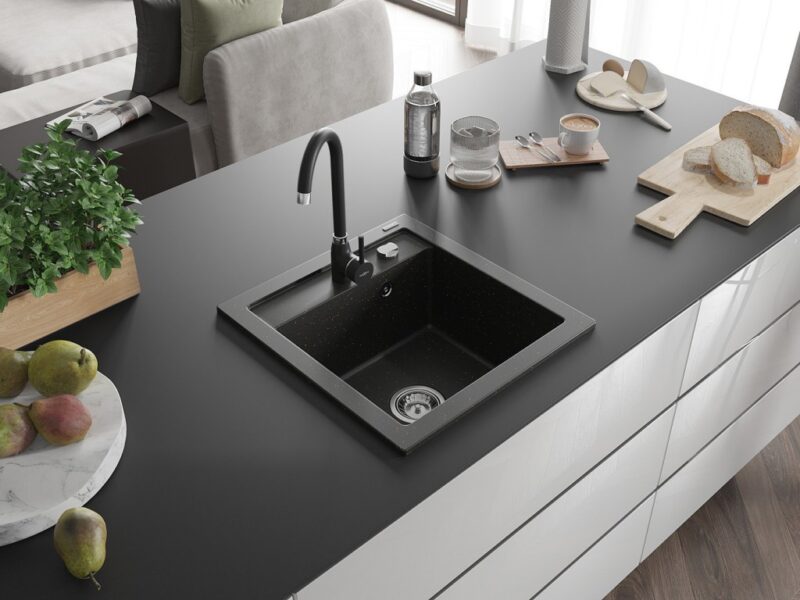 Technické dáta: drez: Rozmer: 520 x 490 x 210 mm Hĺbka komory: 200 mm Rozmery komory: 410×360 mm Priemer odtoku: ø90 mm Typ: 1-komorový Typ: Zapustené do pracovnej dosky Farba: čierna / zlatá metalíza Povrchová úprava sifónu: Chrome Materiál: žula (80% žulové kamenivo, 20% živice) Prepadový otvor: Áno Otvory: (batérie, automatické) 2 Vysoká odolnosť proti poškriabaniu a zmene farby Odolnosť proti tepelným šokom Ľahko čistiteľný povrch Jeden dodatočný vyfrézovaný otvor na samodierovanie ø35 kuchynská batéria: Materiál: mosadz Čierna farba Hlava: Keramická Prevzdušňovač: Áno Výška batérie: 335 mm Rozsah výtoku: 180 mm(GT) Ean: 5907709189348