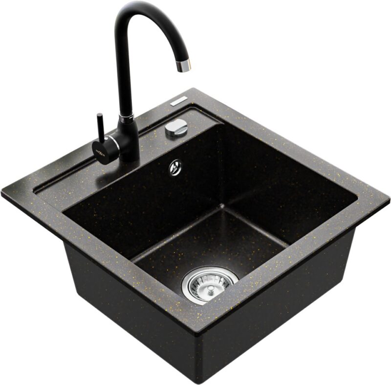 MEXEN/S MEXEN/S – Vito granitový drez 1-miska vrátane batérie Telma, čierna/zlatý metalik 6503-75-670200-70