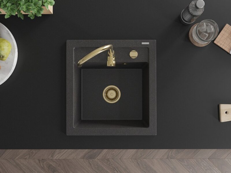 MEXEN/S MEXEN/S – Vito Vito granitový drez 1-miska 520×490 mm, čierna kropenatá, + zlatý sifón 6503521000-76-G
