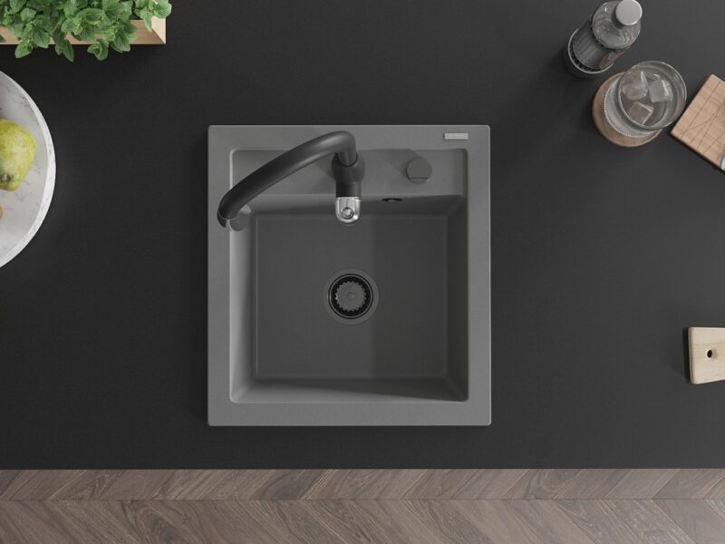 MEXEN/S MEXEN/S – Vitogranitový drez 1-miska vrátane batérie Savita, šedá 6503-71-672601-70-B
