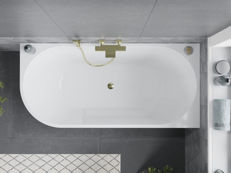 Voľne stojaca rohová vaňa 170 x 80 cm je dokonalou kombináciou elegancie a funkčnosti. Vyrobené zo sanitárneho akrylátu, ponúka lesklý povrch, ktorý je odolný voči matovaniu a UV žiareniu. Vďaka svojej bielej farbe a zlatému prevedeniu sa perfektne hodí do moderných kúpeľňových zariadení. Sada obsahuje sifón a zátku click-clack, ktorá zaisťuje jednoduchú inštaláciu a použitie. Prepadový otvor a odtok v strede zvyšujú pohodlie pri používaní.(GT) Ean: 5905315383532