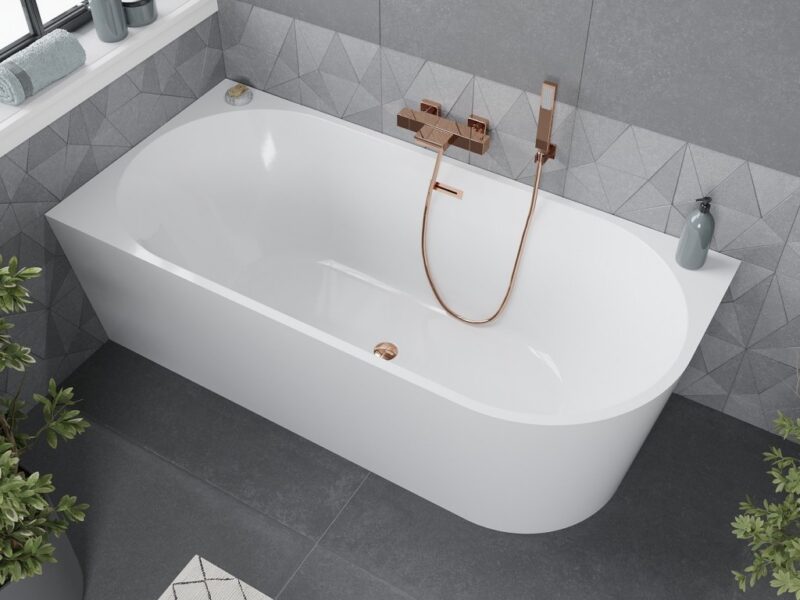 Špecifikácia produktu: Rozmer: 180 x 80 cm Výška: 58 cm Hĺbka: 45 cm Inštalácia: Rohová, Ľavá Materiál: Sanitárny akryl biela farba Povrchová úprava: ružové zlato Prepadový otvor. Áno Otvor pre kohútik: Nie Sada obsahuje sifón a zátku click-clack Odolnosť proti matovaniu a UV žiareniu(GT) Ean: 5905315382955