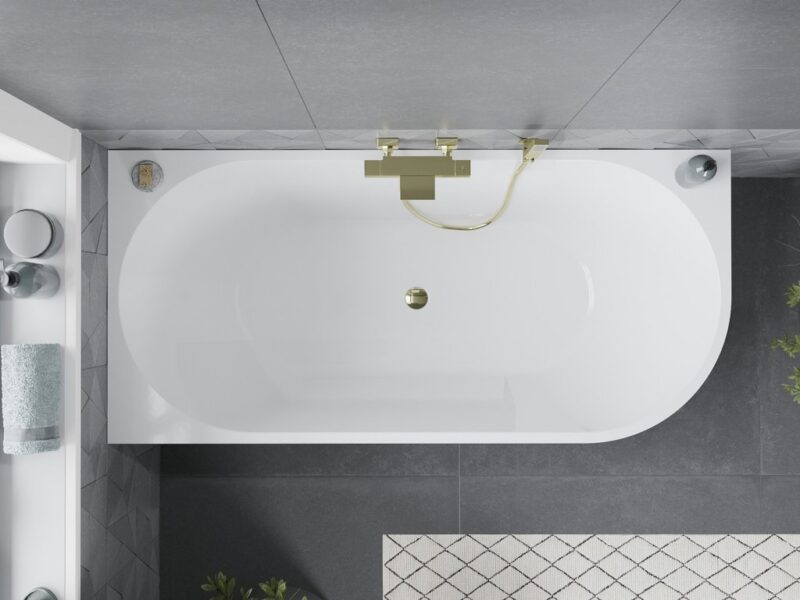 Domovská stránka » Katalóg » MEXEN/S – Mia voľne stojaca rohová vaňa ľavá 180 x 80, biela, sifón a prepad zlatá 52691808000L-50