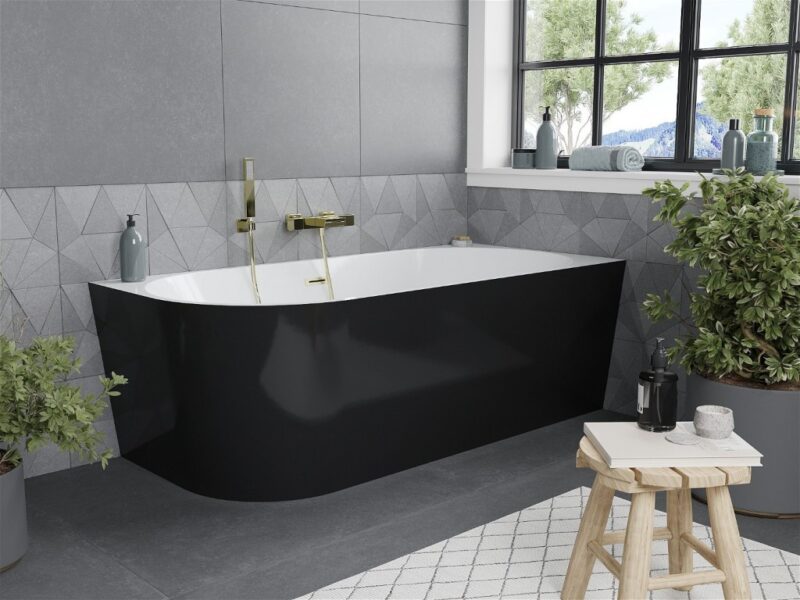 Špecifikácia produktu: Rozmer: 150 x 75 cm Výška: 58 cm Hĺbka: 45 cm Inštalácia: Rohová, pravá Materiál: Sanitárny akryl Farba: Biela/Čierna Povrchová úprava: brúsené zlato Prepadový otvor. Áno Otvor pre kohútik: Nie Sada obsahuje sifón a zátku click-clack Odolnosť proti matovaniu a UV žiareniu(GT) Ean: 5905315383242