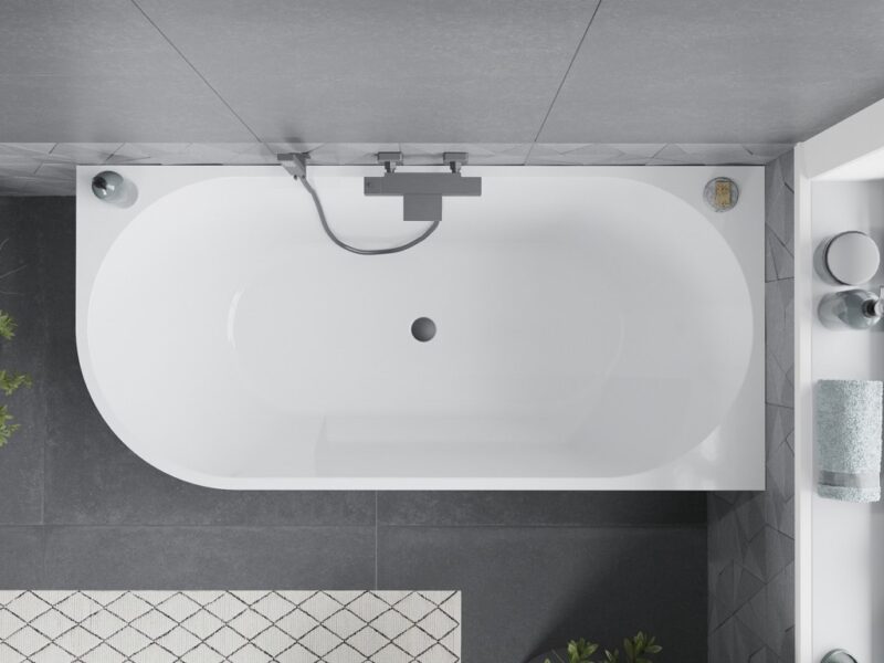MEXEN/S – Mia voľne stojaca rohová vaňa pravá 170 x 80, biela, sifón a prepad grafit metal 52691708000P-95