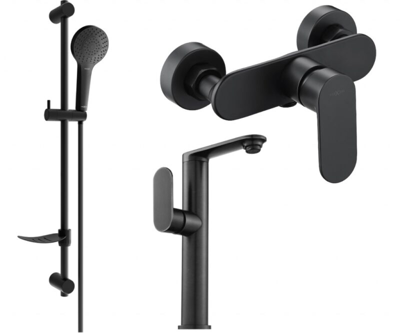 MEXEN/S – Milo DF05 SET umývadlová batéria + sprchová s príslušenstvom, čierna 713154DF05-70