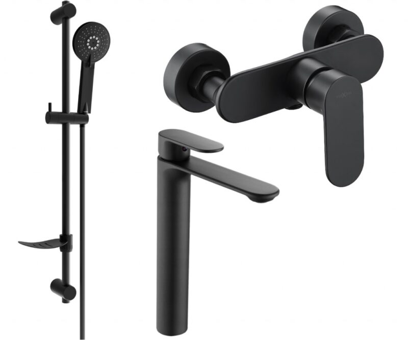 MEXEN/S – Milo DF40 SET umývadlová batéria + sprchová s príslušenstvom, čierna 71314DF40-70