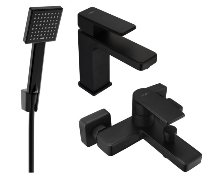 Domovská stránka » Katalóg » MEXEN/S – Mino R45 SET umývadlová batéria + vaňové s príslušenstvom, čierna 72403R45-70