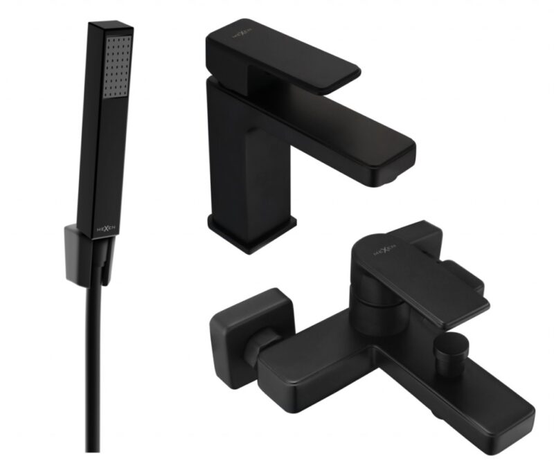 MEXEN/S – Mino R77 SET umývadlová batéria + vaňové s príslušenstvom, čierna 72403R77-70