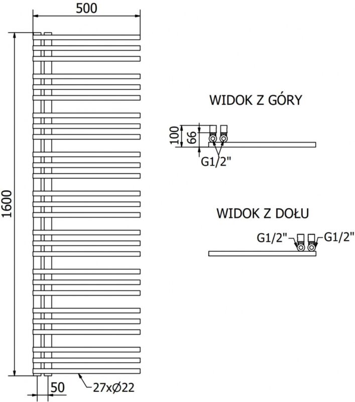 MEXEN/S – Neptún radiátor + vykurovacia tyč 1600 x 500 mm, 900 W, antracit W101-1600-500-2900-66