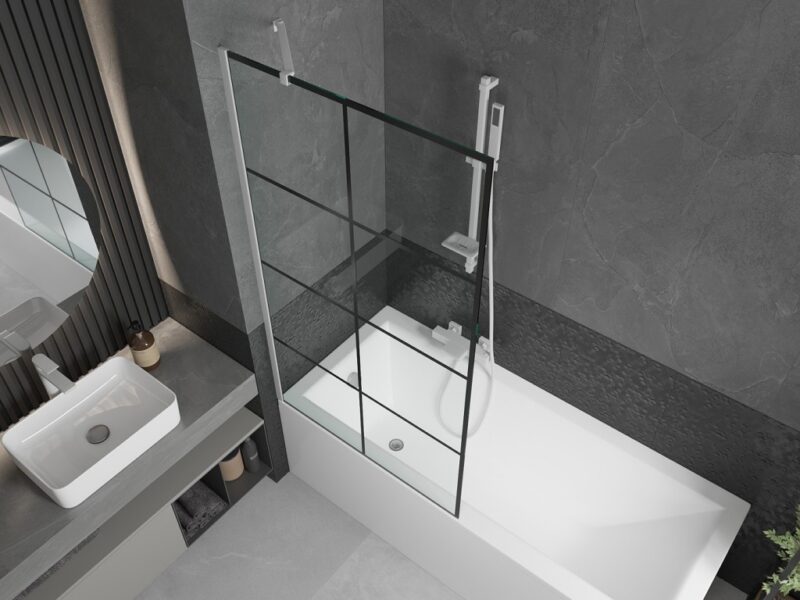 MEXEN/S – Next vaňová zástena FIX 90×150, čierny dekor, biela 895-090-000-00-77-20