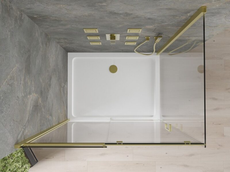 MEXEN/S – Omega obdĺžnikový sprchový kút 130×90, transparent, zlatý + vanička 825-130-090-50-00-4010