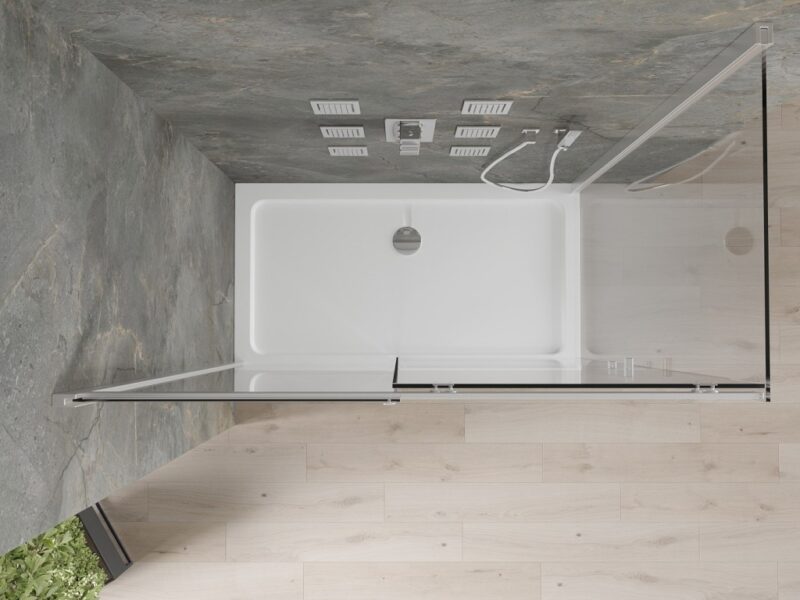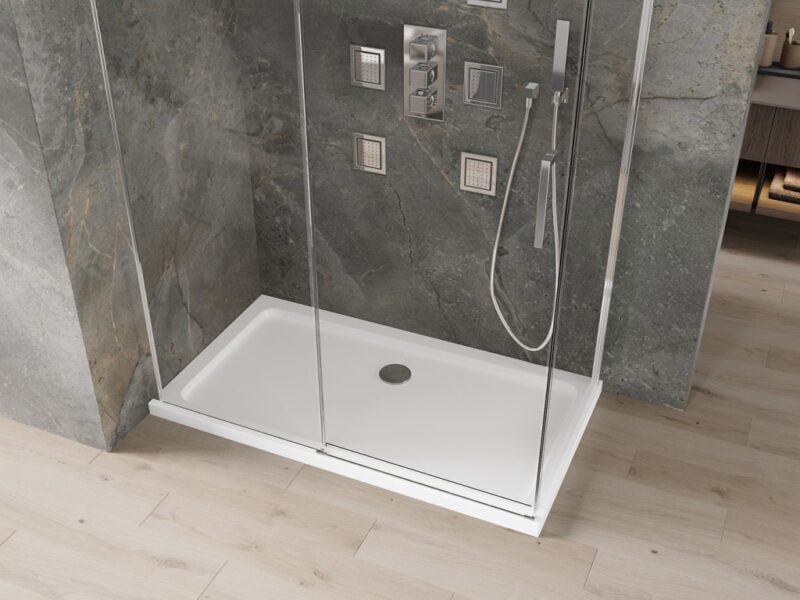 MEXEN/S – Omega obdĺžnikový sprchový kút 140×80, transparent, chróm + vanička 825-140-080-01-00-4010