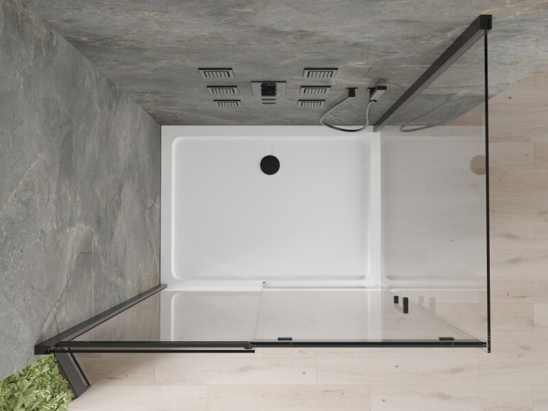 MEXEN/S – Omega sprchovací kút 110×100, transparent, čierna + biela vanička so sifónom 825-110-100-70-00-4010B