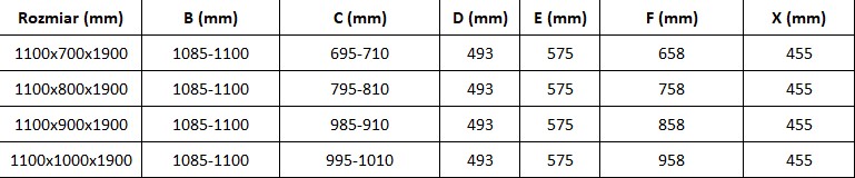 Veľkosť: 110×70 cm (dvere 110 cm, stena 70 cm)