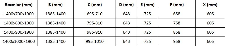 Veľkosť: 140×70 cm (dvere 140 cm, stena 70 cm)