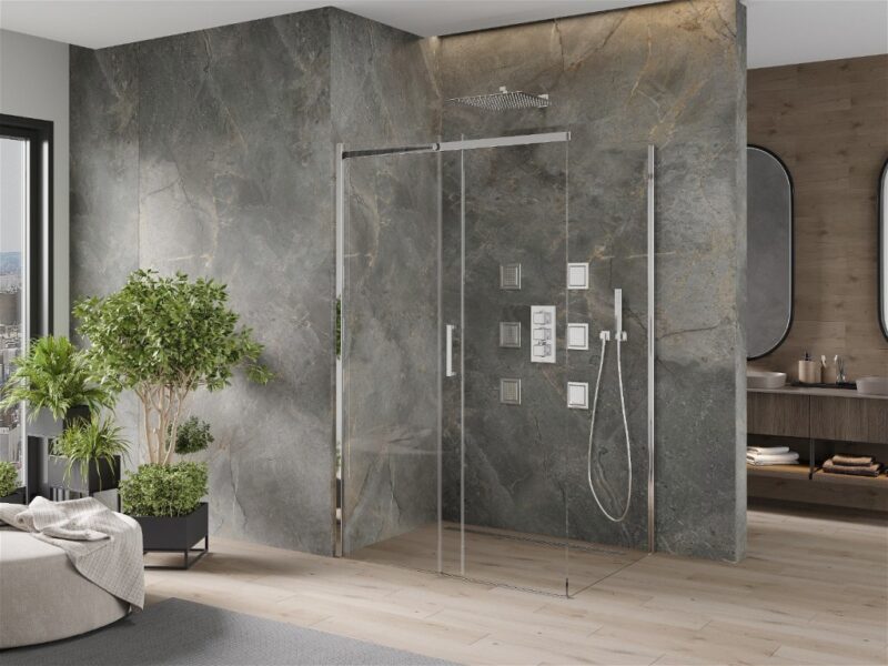 MEXEN/S – OMEGA sprchovací kút 150×90, transparent, chróm 825-150-090-01-00