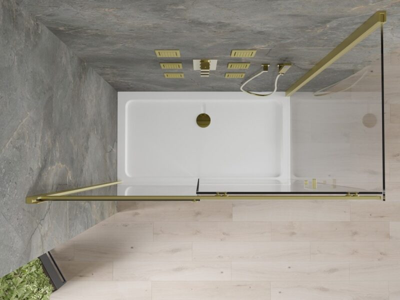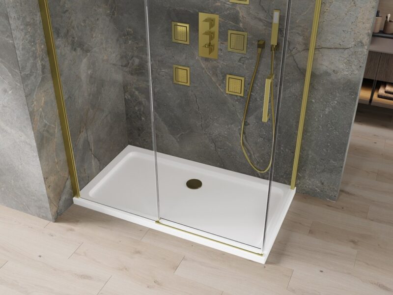MEXEN/S – Omega sprchovací kút posuvný 140×70, sklo transparent, zlatá + vanička 825-140-070-50-00-4010