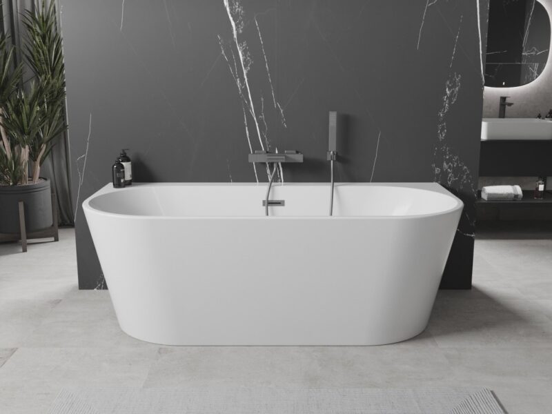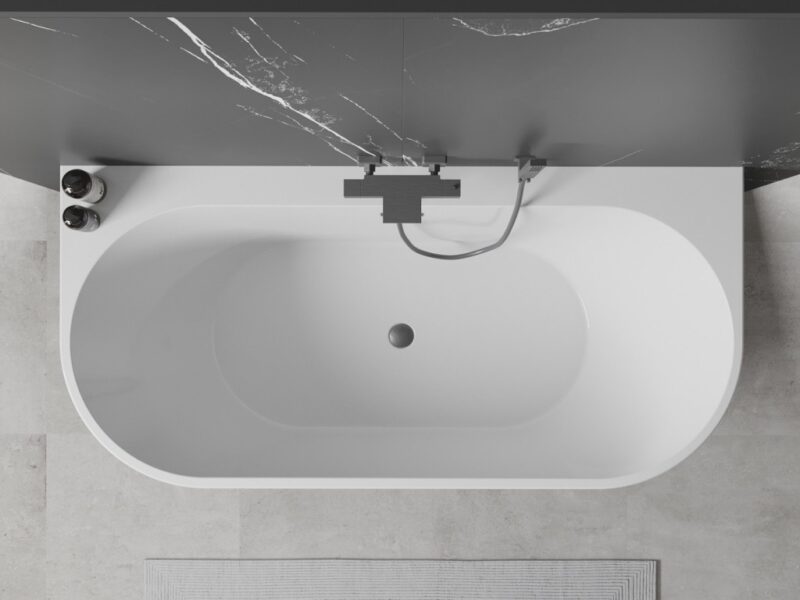 Mexen Oval+ voľne stojaca nástenná vaňa 170 x 80 cm, biela, pištoľovo šedý kartáčovaný prepad, spája eleganciu a funkčnosť. Ponúka priestranný rozmer 170 x 80 cm, s výškou 58 cm a hĺbkou 45 cm, ideálny pre relaxačné kúpele. Vyrobené zo sanitárneho akrylátu odolného voči UV žiareniu a zašpineniu, zaisťuje trvanlivosť a jednoduchú údržbu. Inštalácia na stenu a centrálny odvod vody zvyšujú pohodlie pri používaní. Sifón a click-clack zátka, ktoré sú súčasťou sady, dopĺňajú celok.(GT) Ean: 5905315399519