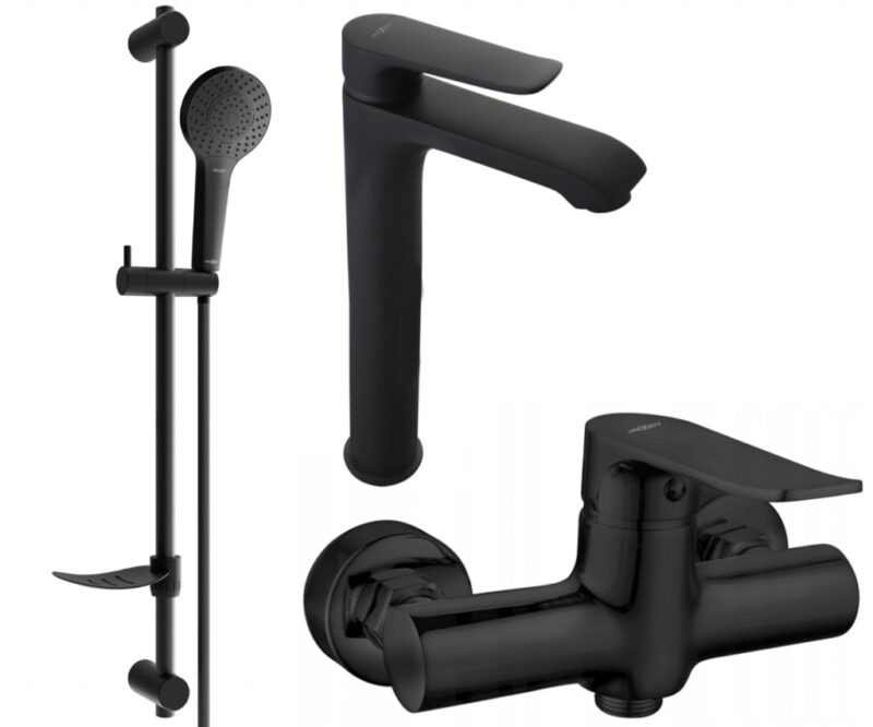 MEXEN/S – Pecos DF05 SET umývadlová batéria + sprchová s príslušenstvom, čierna 72714DF05-70