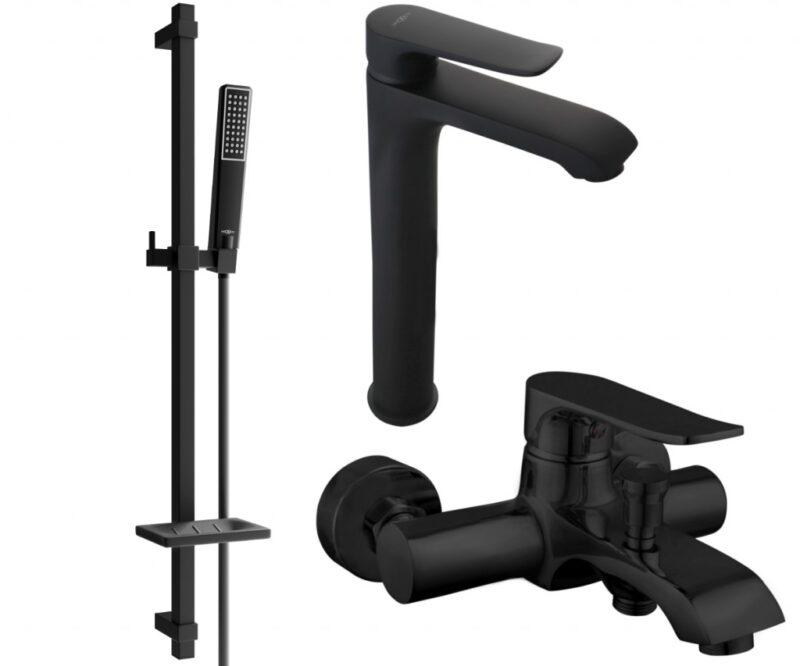 MEXEN/S – Pecos DQ72 Set umývadlové a vaňové batérie s príslušenstvom, čierna 72713DQ72-70