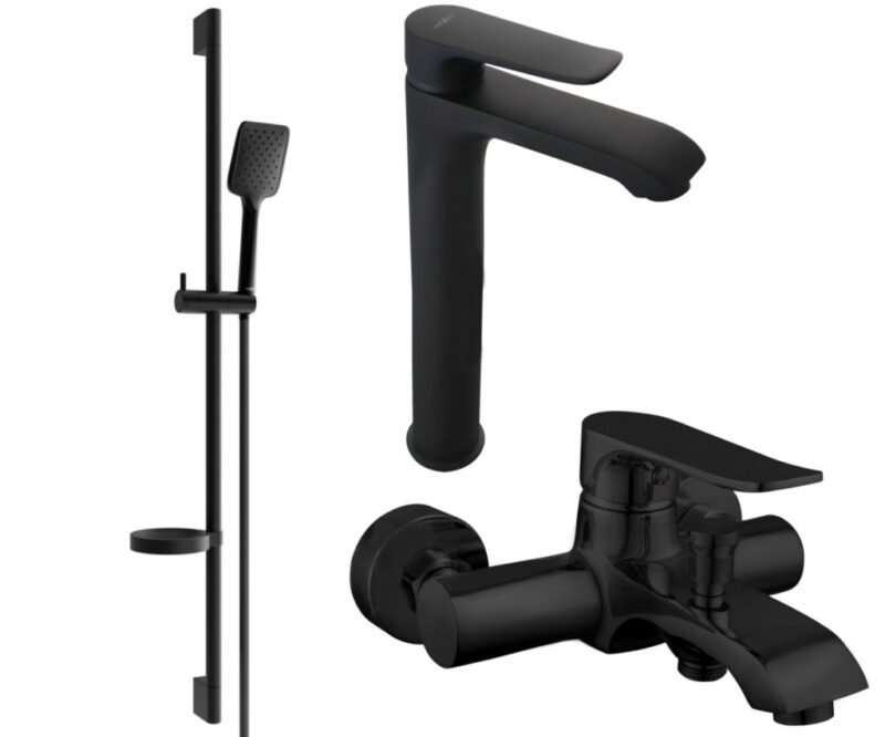 MEXEN/S – Pecos DS62 Set umývadlové a vaňové batérie s príslušenstvom, čierna 72713DS62-70