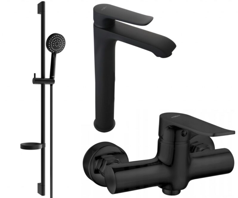 MEXEN/S – Pecos DS75 SET umývadlová batéria + sprchová s príslušenstvom, čierna 72714DS75-70