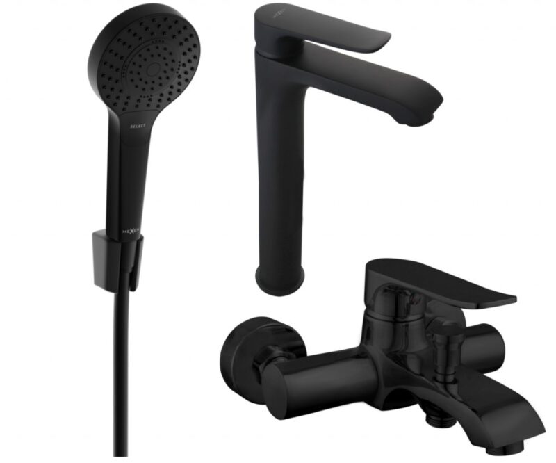 MEXEN/S – Pecos R05 Set umývadlové a vaňové batérie s príslušenstvom, čierna 72713R05-70