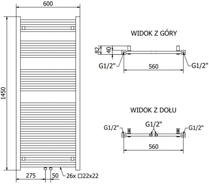 Technické dáta: Výška: 1450 mm Šírka: 600 mm Hĺbka: 40 mm biela farba Materiál: oceľ Vykurovací výkon: 900W Počet vykurovacích tyčí: 26 Celková dĺžka ohrievača: 866 mm Dĺžka vykurovacieho telesa: 750 mm Dĺžka napájacieho kábla: 1,5m Prevádzkové napätie: 230V/50Hz Stupeň krytia: IP44 Dotykové ovládanie pomocou LED displeja Dodatočná ochrana proti chodu na sucho Vstavaný termostat udržuje požadovanú teplotu radiátora Vysoko kvalitný, odolný náter odolný proti korózii Pre správnu funkciu musí byť radiátor naplnený vodou alebo zmesou vody, napr. s glykolom Sada obsahuje: závesy, montážnu sadu a záslepky Funkcia radiátora: – Sensitive umožňuje nastaviť teplotu v rozmedzí 40 ° C-65 ° C – Comfort má možnosť sušenia, ktorá umožňuje nastaviť teplotu ohrevu na zvolenej hodinovej stupnici – Detská poistka umožňuje uzamknúť ovládač kúrenia(GT) Ean: 5905315235275