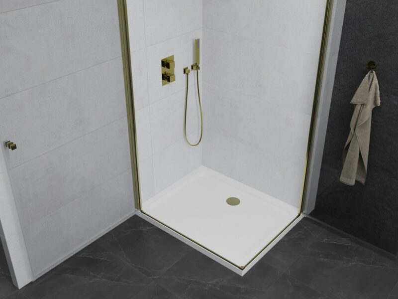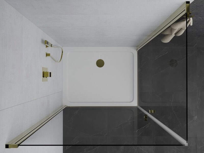 MEXEN/S – PRETORIA duo sprchovací kút 80 x 70, transparent, zlatá + vanička vrátane sifónu 852-080-070-50-02-4010G