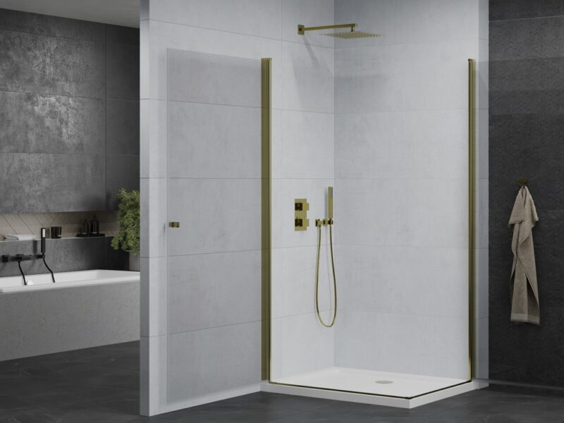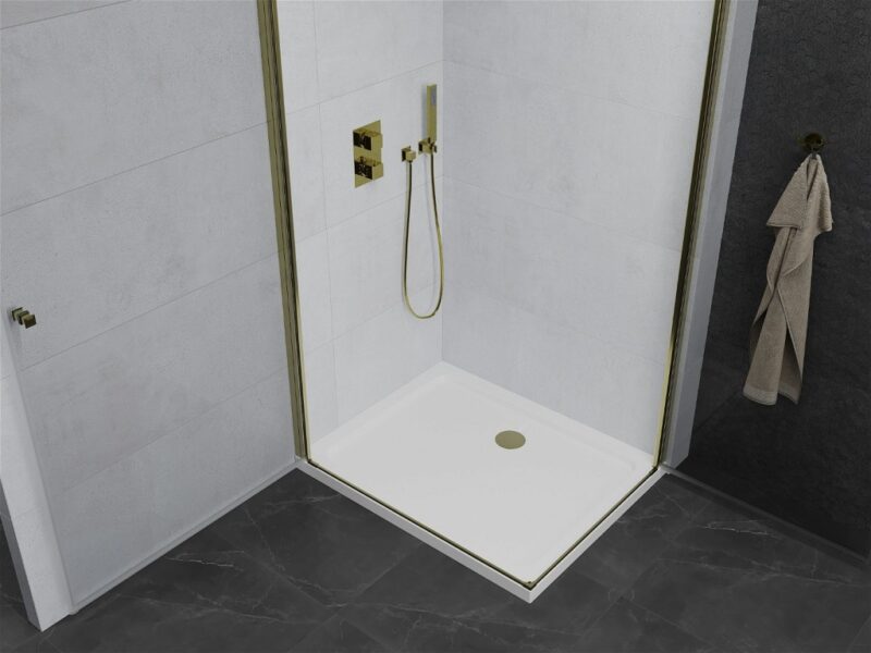 MEXEN/S – PRETORIA duo sprchovací kút 90 x 80, transparent, zlatá + vanička vrátane sifónu 852-090-080-50-02-4010G