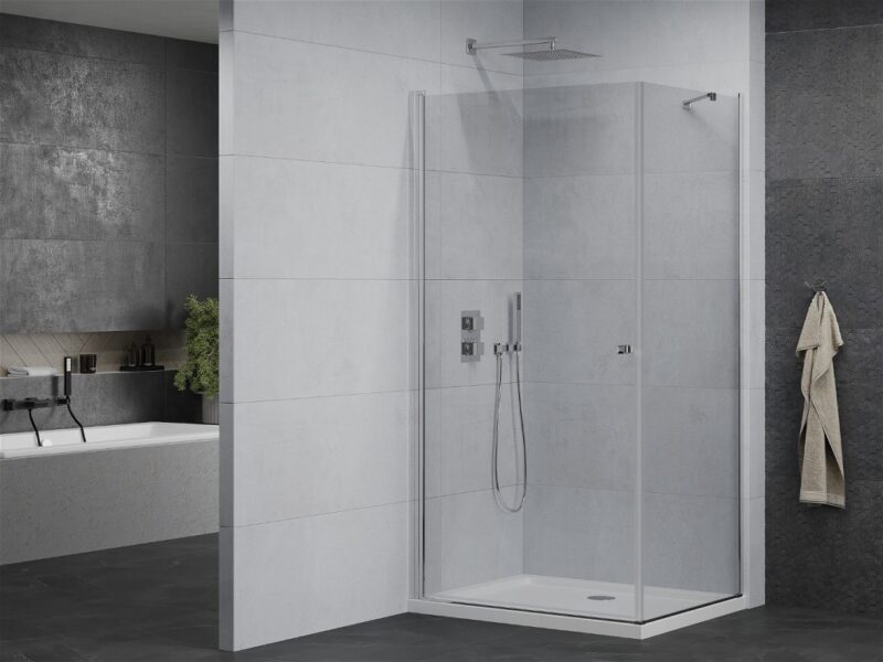 MEXEN/S – Pretoria otváracia sprchovací kút 100×80, sklo transparent, chrom + vanička 852-100-080-01-00-4010