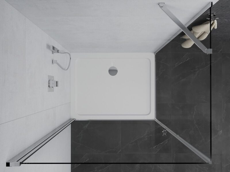 MEXEN/S – Pretoria otváracia sprchovací kút 70×90, sklo transparent, chrom + vanička 852-070-090-01-00-4010
