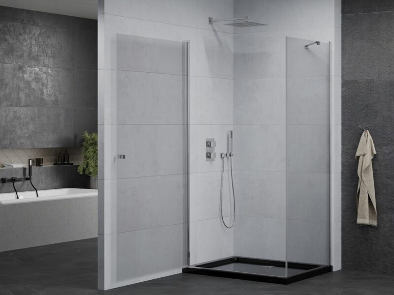 Technické údaje kabíny: Rozmer: 70×80 cm (dvere 70 cm, stena 80 cm) Výška: 190 cm Montáž: Univerzálna Vstup: krídlové dvere Farba skla: Transparent – Transparent Povrchová úprava: Chrome Typ skla: Tvrdené Hrúbka skla: 6mm Profil: Hliník Ľahko čistiteľný povlak: Áno Vyrovnanie nerovností steny: Áno Nastavenie šírky: Áno Možno inštalovať na sprchovú vaničku alebo dlaždice: Áno Kovová rukoväť Súprava tesnení na odvod vody Hliníkový prah tesniace dvere Technické dáta sprchovej vaničky: Rozmery: 80 x 70 x 5 cm Čierna farba Typ: Obdĺžnikový , Tenký Materiál: sanitárny akryl Vystužené dno Kompletný so sifónom vyčisteným zhora Priemer odtoku: 90 mm Povrchová úprava korku: chróm(GT) Ean: 5905315577900