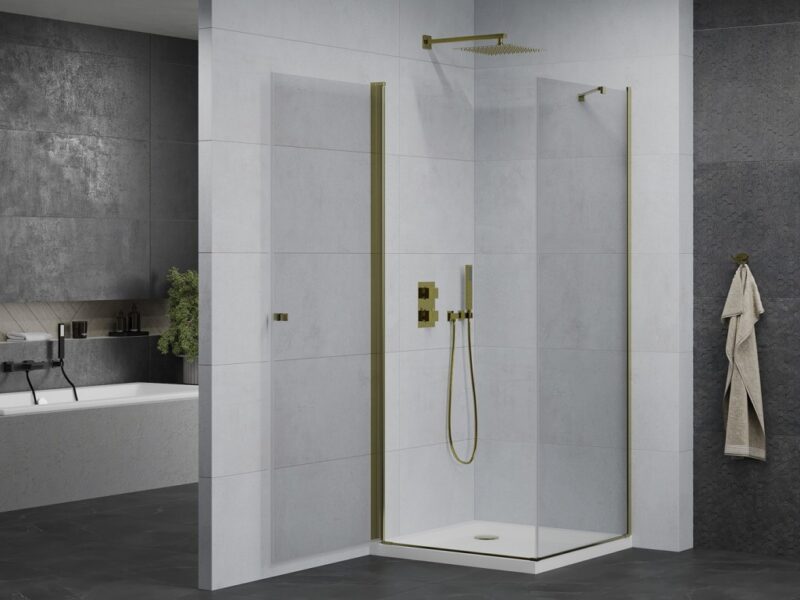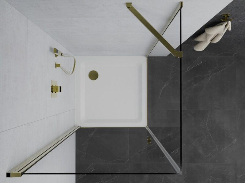 MEXEN/S – Pretoria štvorcový sprchovací kút 90×90, transparent, zlatý + vanička 852-090-090-50-00-4010