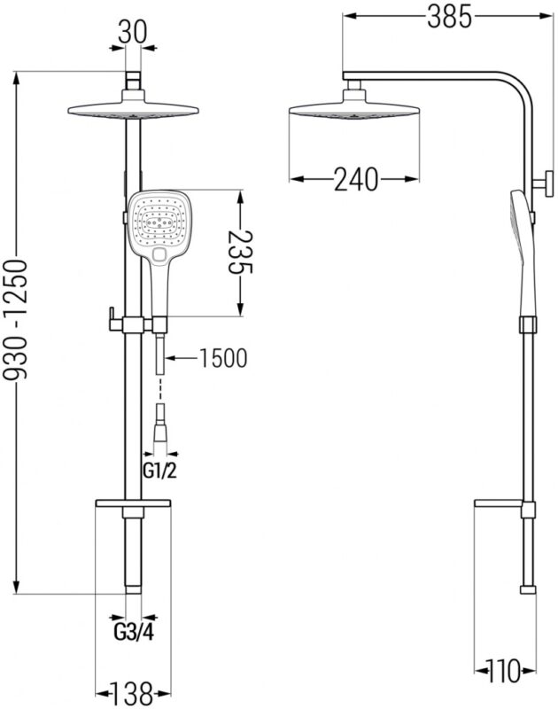 MEXEN/S – Q17 čierna sprchový stĺp 798171795-70