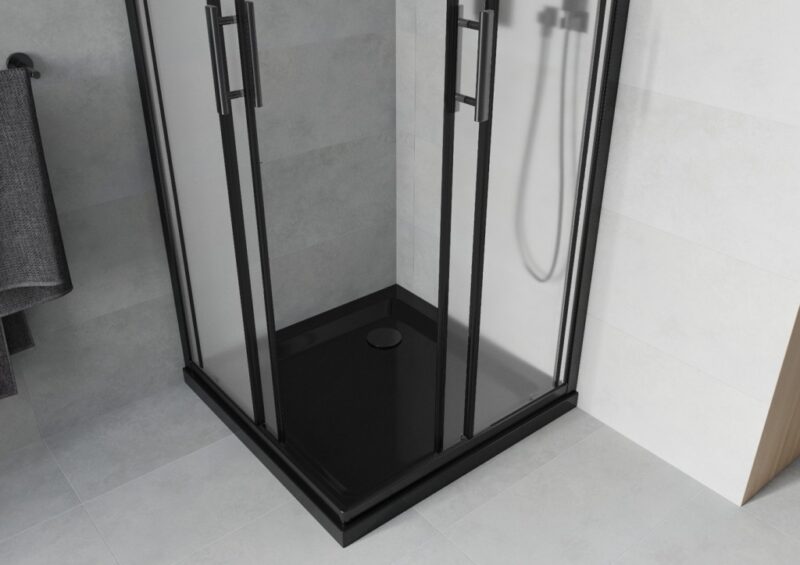 MEXEN/S – Rio sprchovací kút 70×70, dekor, čierna + vanička so sifónom 860-070-070-70-30-4070B