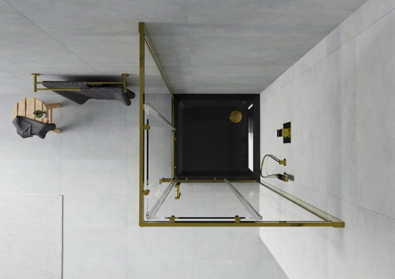 MEXEN/S – Rio sprchovací kút 70×70, transparent, zlato + vanička Flat, čierna 860-070-070-50-00-4070G