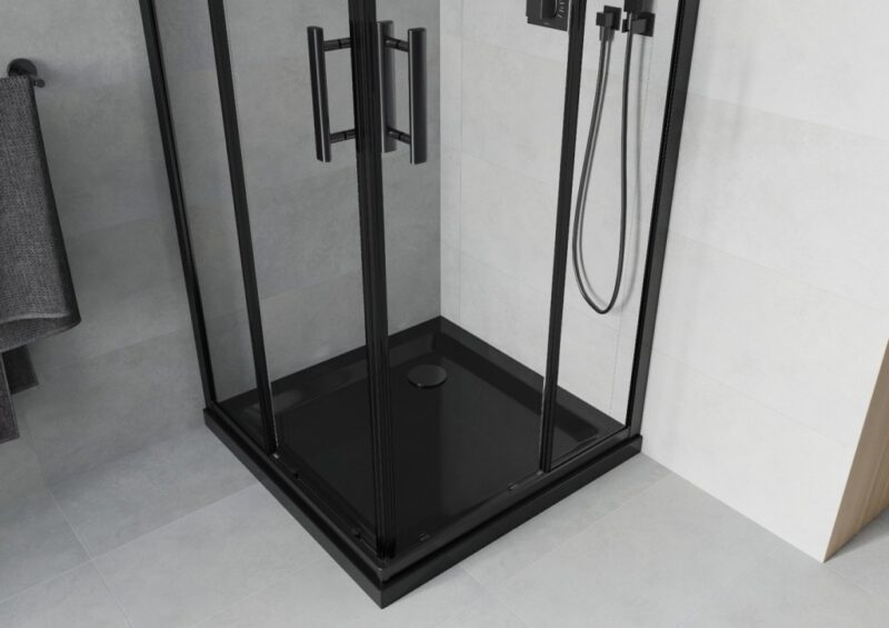 MEXEN/S – Rio sprchovací kút 80 x 80, transparent, čierna + vanička vrátane sifónu 860-080-080-70-00-4070B