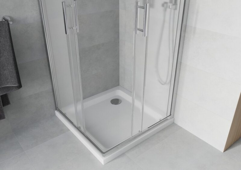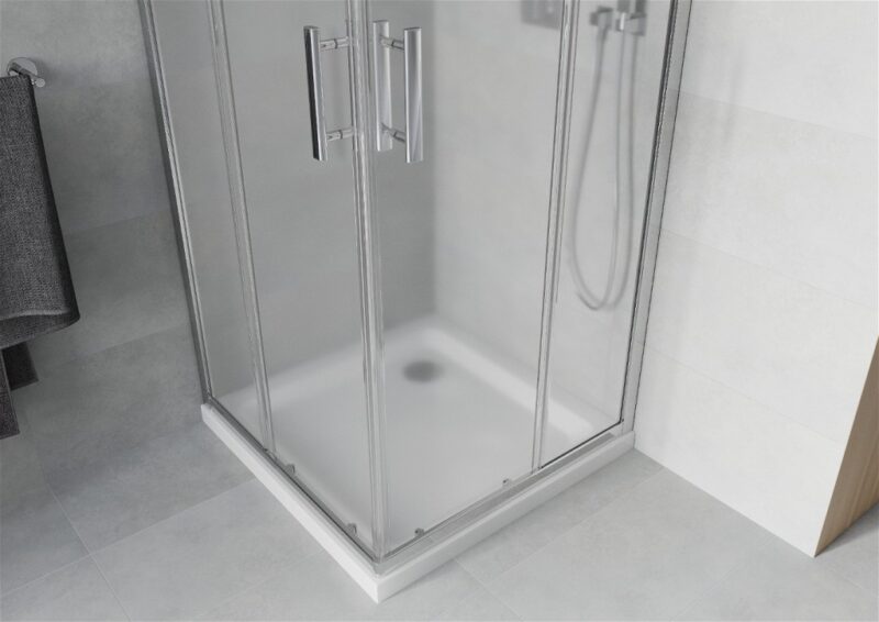 MEXEN/S – Rio Sprchovací kút štvorcový 80×80, szron, chróm + vanička so sifónom 860-080-080-01-30-4010