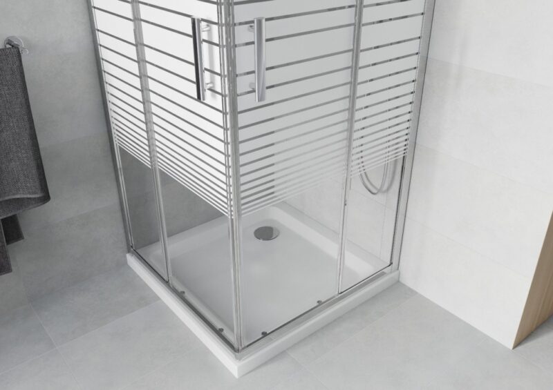 MEXEN/S – Rio Sprchovací kút štvorcový 80×80, transparent / dekor, chróm + vanička so sifónom 860-080-080-01-20-4010