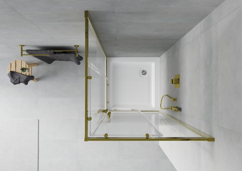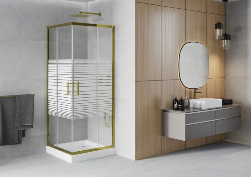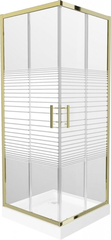MEXEN/S – Rio sprchovací kút štvorec 80 x 80, pruhy, zlato + vanička Rio vrátane výpuste 860-080-080-50-20-4510
